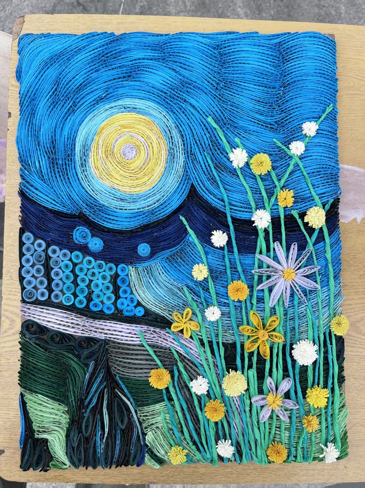 在这些作品中有衍纸生花,彩色纸条被巧妙卷曲、粘贴,形成了娇艳的花朵和灵动的蜻蜓,仿佛是流动的色彩诗篇;扭扭棒焕彩,用扭扭棒制作的的簪花花环,如同春天里最美的风景,插在花瓶中的扭扭棒花束,散发着温馨的气息;泡泡泥造境趣,将泡泡泥变成形态各异的大自然生物、灵动的珊瑚与神秘的礁石,构建出一个充满想象力的微观世界,将生肖形象以手工形式呈现于时钟表盘,既让传统生肖文化变得直观可感,又赋予时钟艺术价值;织布织梦,用不织布缝制,凭借丰富色彩与别致造型,创作出生动形象,传递温暖质朴的美感。
